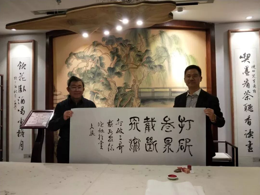 2018年3月3日,原贵州省副省长马文骏携夫人任中允来到中华茶道馆进行参观考察,并在中华茶道馆五楼两宋雅趣馆留下墨宝,老村长集团董事长陶晓旭、中华茶道馆副馆长张静、茶艺老师殷秀等陪同参观。